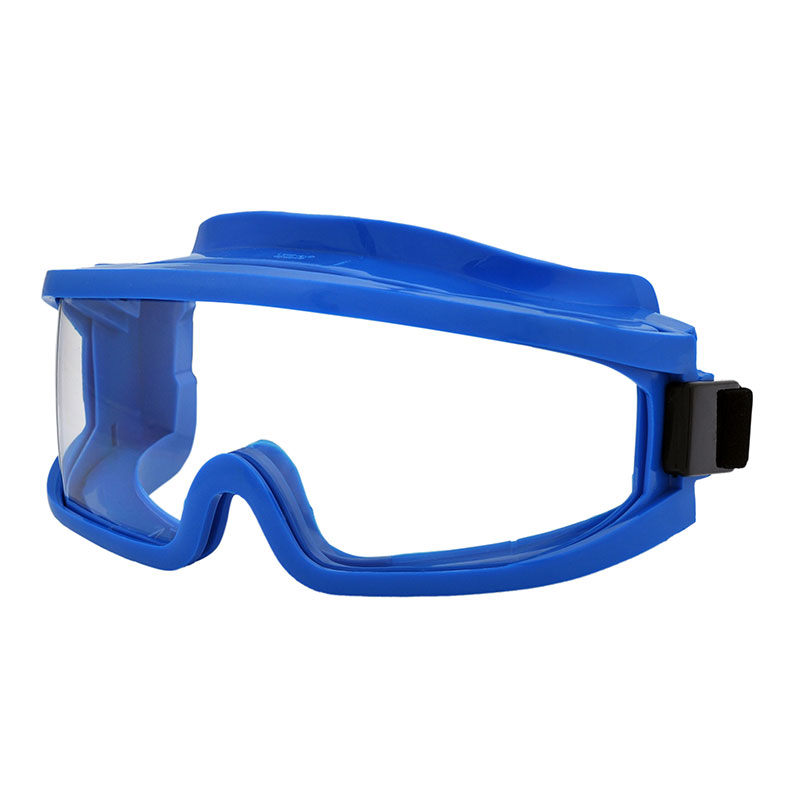 Acetate lens for excellent chemical resistance. Elastic rubber strap for comfort fit.