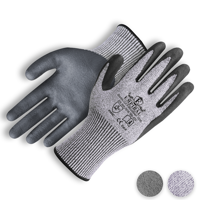 Grey U2 weave HPPE glove liners/black microfoam nitrile palm coated gloves