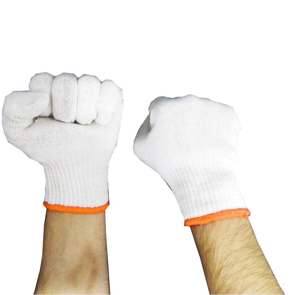 Bleach White Cotton Knitted Gloves with Orange Overlock