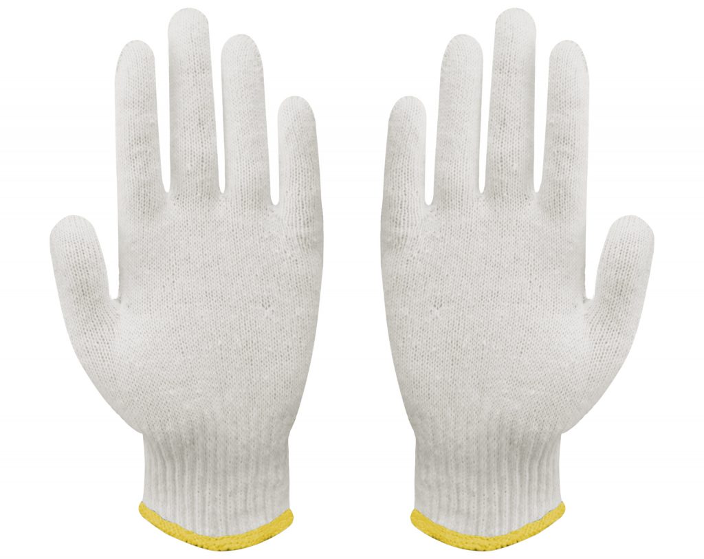 Bleach White Cotton Knitted Gloves 840 grams with Yellow Overlock