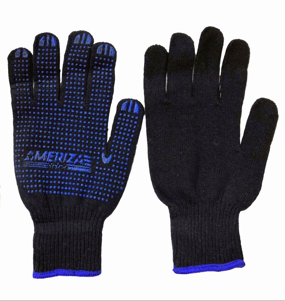 Cotton knitted gloves with single sided heavy-duty blue PVC dots.